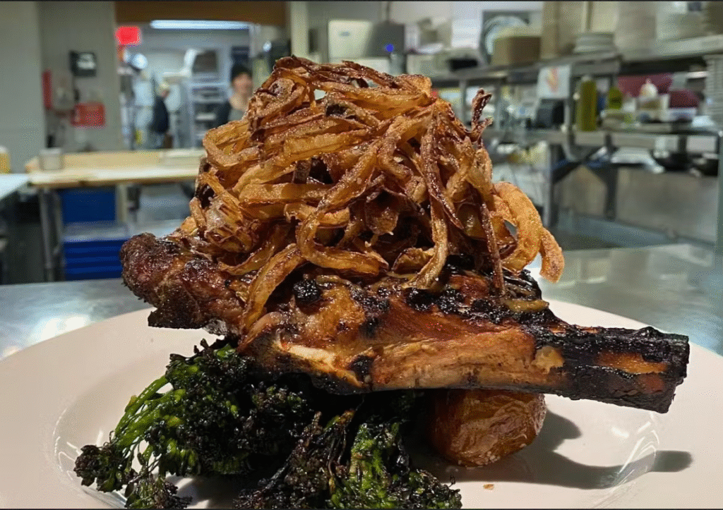 Located in the heart of Dayton, Wheat Penny is a neighborhood spot with a chef-driven menu that blends rustic comfort with elevated execution. The kitchen’s standout is the Prime Dry-Aged Bone-In Ribeye — a 28-day aged prime cut, seasoned simply with kosher salt and fresh ground black pepper, then grilled to perfection. Finished with porcini mushroom butter, white truffle oil, and crispy onion straws, this steak rivals offerings from far more formal steakhouses.