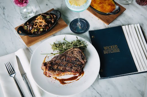 Wicked Butcher Dallas stands as a sophisticated modern steakhouse in the heart of downtown Dallas, Texas, offering an elevated dining experience that merges classic steakhouse tradition with contemporary flair. This steakhouse has established itself as a premier destination for steak enthusiasts, featuring hand-selected USDA Prime cuts prepared with meticulous attention to detail. The restaurant’s commitment to quality is evident in their carefully curated meat program, which showcases premium steaks cooked to perfection on their custom-built grills.